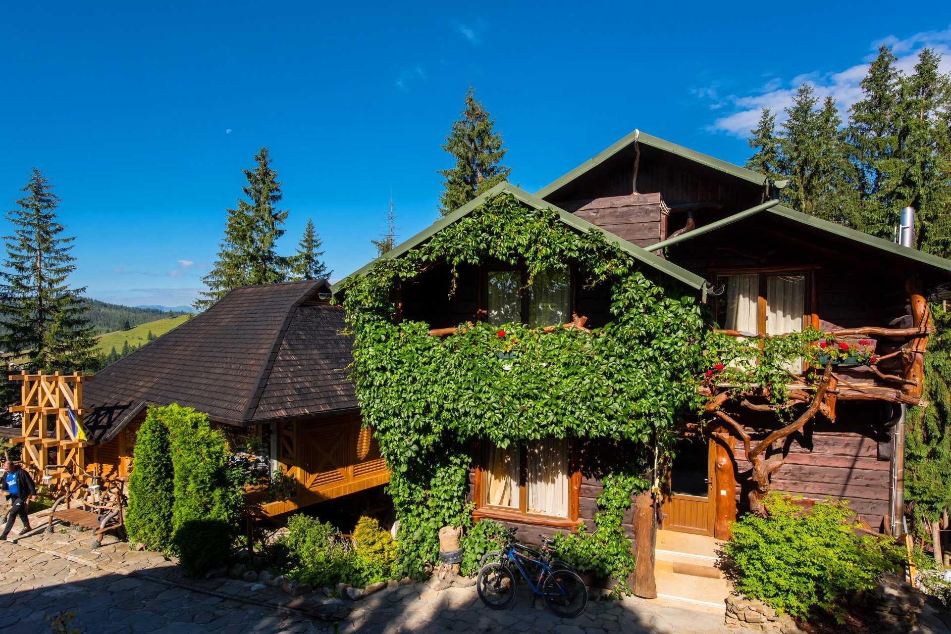 Майстерно зведений камін, телевізор та великий дубовий стіл надають інтер’єру їдальні ідилії, домашнього затишку й тепла. Кухня обладнана всіма необхідними засобами сучасної кухонної побутової техніки: мікрохвильовою піччю, чайником, кавоваркою, холодильником. Поруч знаходиться крита тераса, де можна за філіжанкою ароматної кави насолоджуватися свіжим гірським повітрям та споглядати неосяжні горизонти.