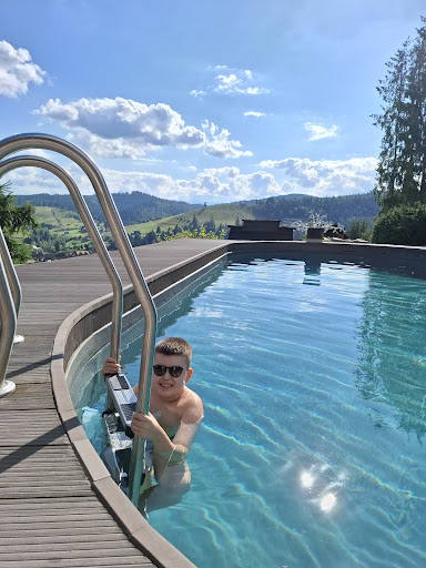 Два відкриті басейни з температурою +29 °C, чотири гарячі джакузі, дві релакс зони та 2 бані на дровах подарують вам відчуття повного релаксу та море задоволення.