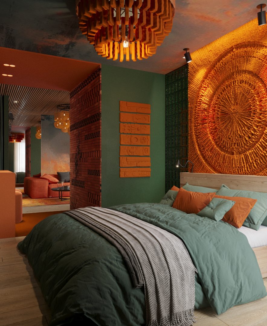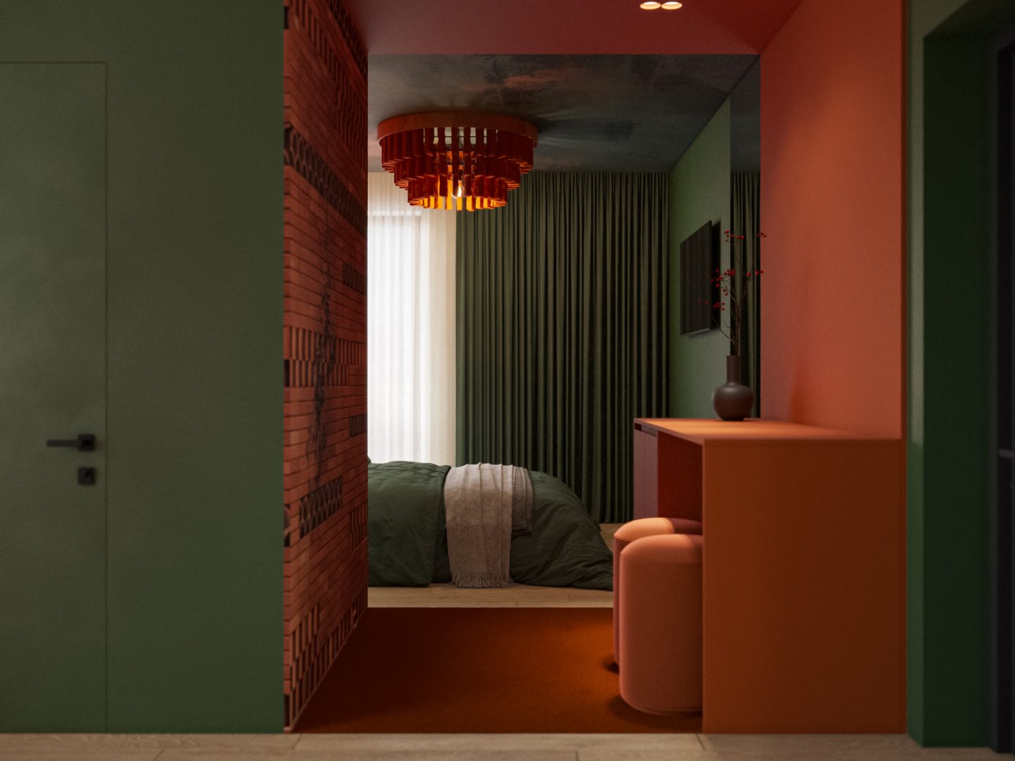 Номер з авторським дизайном, в якому чудово поєднана сучасна арт естетика та елементи декору, що характерні історії даного регіону. В ньому розташоване двоспальне ліжко 2 м Х 2 м, великий розкладний диван, письмовий стіл, крісло-пуф, комфортна шафа для одягу з LED-підсвіткою, штори блекаут (перешкоджають проникненню сонячного світла, що підвищує комфорт вашого відпочинку у момент сну). На підлозі паркетне покриття.