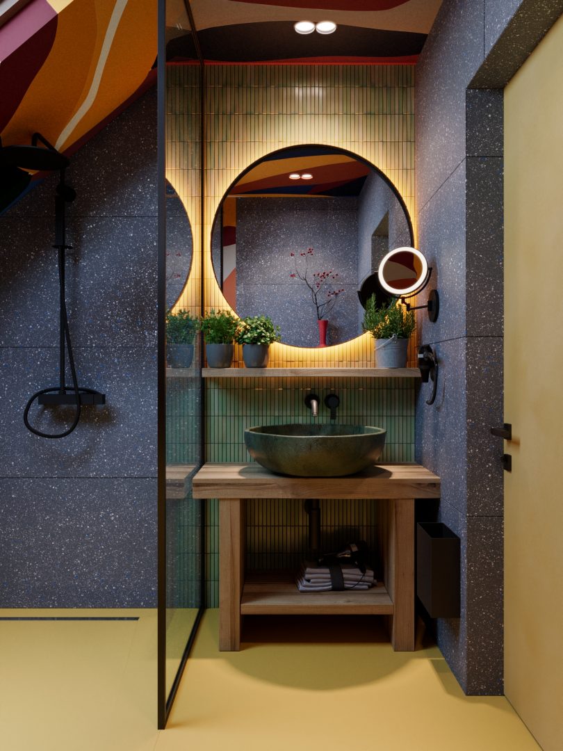Підлога з підігрівом, туалет, душова на рівні підлоги забезпечить вам комфорт і простір, умивальник, дзеркало з LED-підсвіткою, фен, 5 халатів, капці, засоби особистої гігієни, рушники.